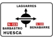 S-222a. Preseñalización, con cartel lateral, en carretera convencional o carretera multicarril hacia autopista o autovía y dirección propia. Indica, en una carretera convencional o una carretera multicarril, la dirección propia de la carretera por la que se circula y los destinos de las salidas del próximo nudo cuando estas dirigen hacia una autopista o una autovía, así como la distancia a la que se encuentran dichas salidas.