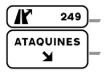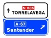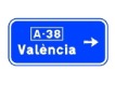 S-301. Poblaciones en un itinerario por autopista o autovía. Indica nombres de poblaciones situadas en un itinerario constituido por una autopista o autovía y el sentido por el que aquellas se alcanzan. El cajetín situado dentro de la señal define la categoría y número de la carretera. Las cifras alineadas con los destinos indican la distancia existente a los mismos expresada en kilómetros.