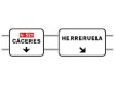 S-300. Poblaciones de un itinerario por carretera convencional o carretera multicarril. Indica los nombres de poblaciones situadas en uno o varios itinerarios constituidos por una carretera convencional o una carretera multicarril y el sentido por el que aquéllas se alcanzan. Dentro de la señal puede figurar uno o varios cajetines acompañando a los destinos, que definen la categoría y número de la carretera. Las cifras alineadas con los destinos indican la distancia existente a los mismos expresada en kilómetros.
