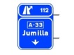 S-341. Señales de destino de salida inmediata hacia carretera convencional o carretera multicarril. Indica el lugar de salida de una autopista o autovía hacia una carretera convencional o carretera multicarril. La cifra indica el número del enlace, que se corresponde con el punto kilométrico de la carretera.