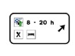 S-377. Señalización de salida inmediata a servicios en el resto de carreteras convencionales. Indica, en el resto de carreteras convencionales, la salida hacia los servicios señalizados. En caso de que entre ellos exista una estación de servicio y/o una estación de recarga, se indicará su horario de apertura.