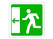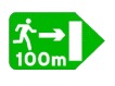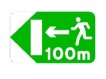 S-990b. Salida de emergencia próxima. Indica la dirección en que se encuentra la salida de emergencia más cercana y la distancia que resta hasta alcanzarla.