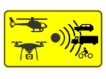 S-991g. Control de velocidad mediante medios aéreos. Indica la posible existencia en el tramo de controles de velocidad mediante medios aéreos, como helicóptero o dron. En caso de que dichos controles tengan como objeto un tipo de vehículo en concreto, la señal podrá incluir únicamente el pictograma correspondiente a dicho vehículo.