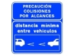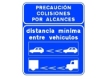 S-992a. Señal informativa de la distancia mínima entre vehículos en carretera convencional o carretera multicarril. Indica, en un tramo de carretera convencional o una carretera multicarril donde se dan frecuentemente colisiones por alcance, el número de marcas viales de galón que debe dejar un vehículo entre él y el que le precede.