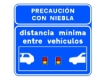 S-992e. Señal informativa de la distancia mínima entre vehículos indicada mediante balizas luminosas. Indica, en un tramo donde es frecuente la pérdida de visibilidad debido a la niebla, el número de balizas luminosas que debe dejar un vehículo entre él y el que le precede.