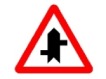 P-1c. Intersección con prioridad sobre incorporación por la derecha.Peligro por la proximidad de una incorporación por la derecha de una vía, cuyos usuarios deben ceder el paso.