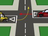 3. A la vista de esta situación, ¿qué vehículo pasará primero? a) El vehículo amarillo. b) El vehículo rojo. c) Los conductores tendrán que ponerse de acuerdo.