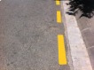 Marca amarilla longitudinal continua.Una línea continua, de color amarillo, en el bordillo o junto al borde de la calzada, significa que la parada y el estacionamiento están prohibidos o sometidos a alguna restricción temporal, indicada por señales, en toda la longitud de la línea y en el lado en que esté dispuesta.
