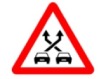 P-35. Trenzado.Peligro por la proximidad de un tramo comprendido entre una confluencia y una bifurcación donde se producen distintos movimientos de cambio de carril por parte de los vehículos, cruzándose sus trayectorias y aumentando por ello el riesgo de que se produzcan colisiones.